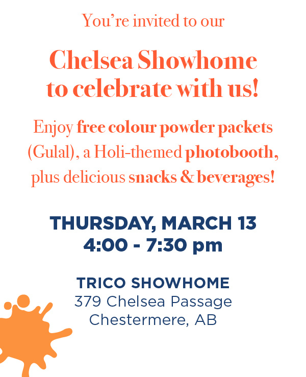 You’re invited to our Showhome to celebrate with us! Enjoy free colour powder packets (Gulal), a Holi-themed photobooth, plus delicious snacks & beverages!