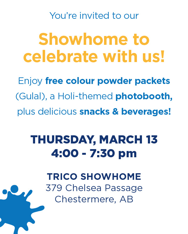 You’re invited to our Showhome to celebrate with us! Enjoy free colour powder packets (Gulal), a Holi-themed photobooth, plus delicious snacks & beverages!